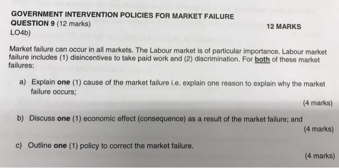 Solved Government Intervention Policies For Market Failure Chegg Com