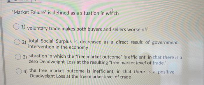 Solved Market Failure Is Defined As A Situation In Which Chegg Com