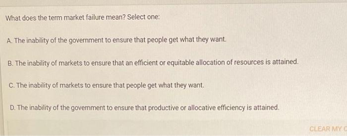 Solved What Does The Term Market Failure Mean Select One Chegg Com